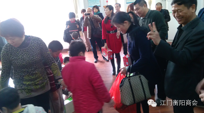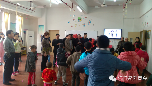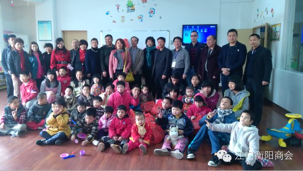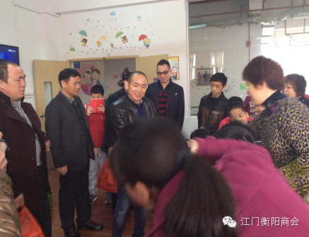 2015年2月10日上午,江门市湖南衡阳商会由吴钟鹤会长率队,与江门市民政局副调研员李玉芬、社会组织管理局林局及何科等领导来到江门市福利院看望儿童进行慰问慈善活动,江门市湖南衡阳商会领导参加这次活动分别有:执行会长赵恒丰、常务副会长彭秋冬、雷德生、洪自信、尹国琼、张国强、执行秘书长王继碧及秘书处一行。