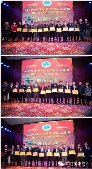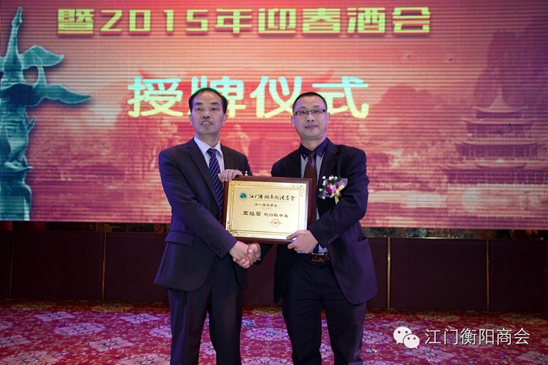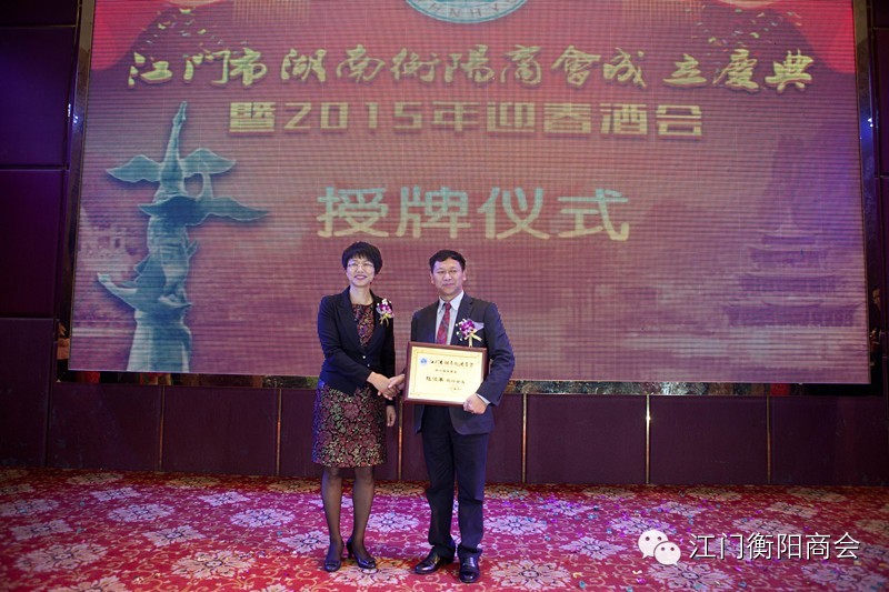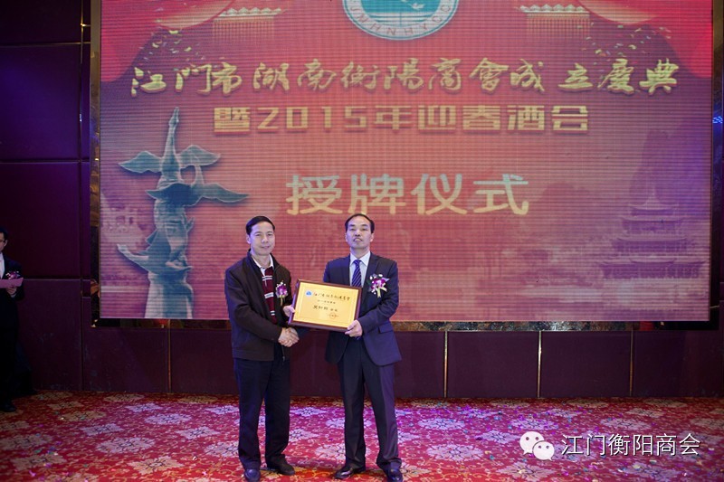 (上图为江门市湖南衡阳商会副会长颁牌)