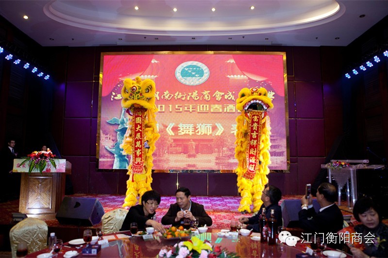(上图为醒狮开场:祝江门市湖南衡阳商会富贵吉祥财源旺,宏图大展万事兴!)