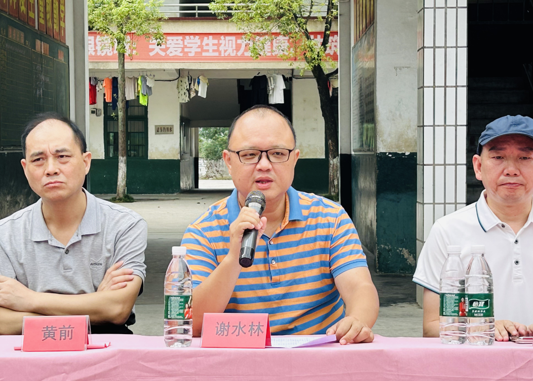 衡阳县教育局副局长黄前发言,他对江门市湖南衡阳商会的爱心团队企业家们捐赠表示感谢,并对老师们和同学们提出了期望。希望老师们弘扬教育精神,为国家培养栋梁;同学们胸怀祖国、努力学习,将来把爱心传递下去。